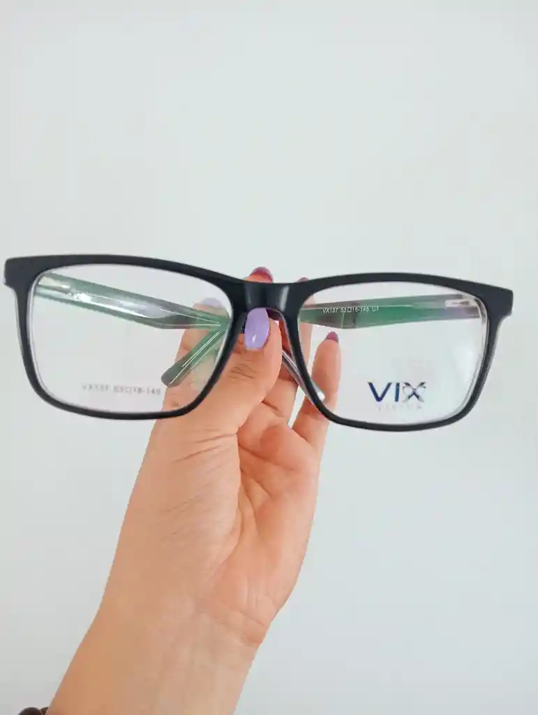 Montura unisex en acetato, con brazos reforzados con varillas y flex. Tamaño: 53 Puente: 18 Brazo: 145 Apta para lentes monofocales, bifocales y progresivos Incluye estuche de pasta