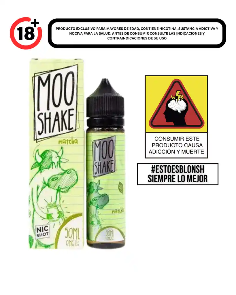 E-liquid MOO Shake sabor matcha. Presentación de 60 ml sin nicotina, perfil cremoso y suave.