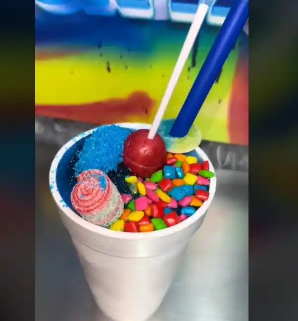 contiene: Mora Azul, gomitas surtidas, bombón y chicles. 12 onzas.