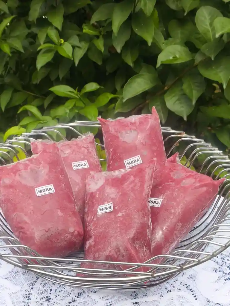 Pulpa de Mora sin semillas x 250 gramos. Aroma delicioso, con un sabor vibrante. Al estar libre de semillas, tiene una textura suave y homogénea, ideal para preparar jugos, postres, cocteles o salsas.