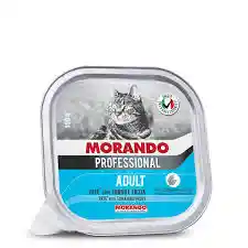 Morando Professional sabor atún y trucha para gatos adultos. Un alimento húmedo delicioso y nutritivo con textura suave que los gatos disfrutan desde el primer bocado. Su práctica presentación de 100 g es ideal para ofrecer una comida llena de sabor y calidad.