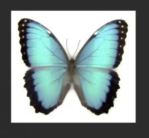 Mariposa de especie Morpho azul. inmortalizada en cuadro de 18*18 cm. marco de color negro o blanco (según disponibilidad)