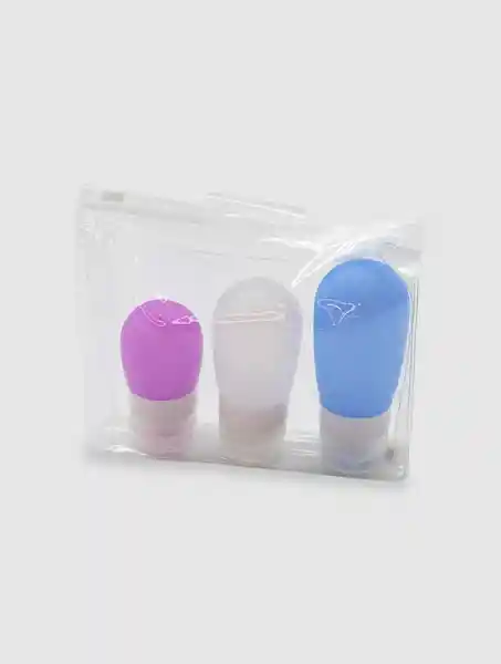 Set de 3 Envases Rellenables Para Viajes. Ideal Para Llevar Cremas Shampoo Jabón Líquido y Todo lo Que Necesites en Tus Viajes de Forma Práctica y Compacta. La Tapa se Desenrosca Para Poder Rellenar Con Facilidad. Fabricados en Silicona Blanda Súper Livianos Para no Sumar Peso en la Valija. Contenido: 80Ml 60Ml y 38Ml. Medidas: 11X35 cm 9X3 cm y 8X3 cm Respectivamente.