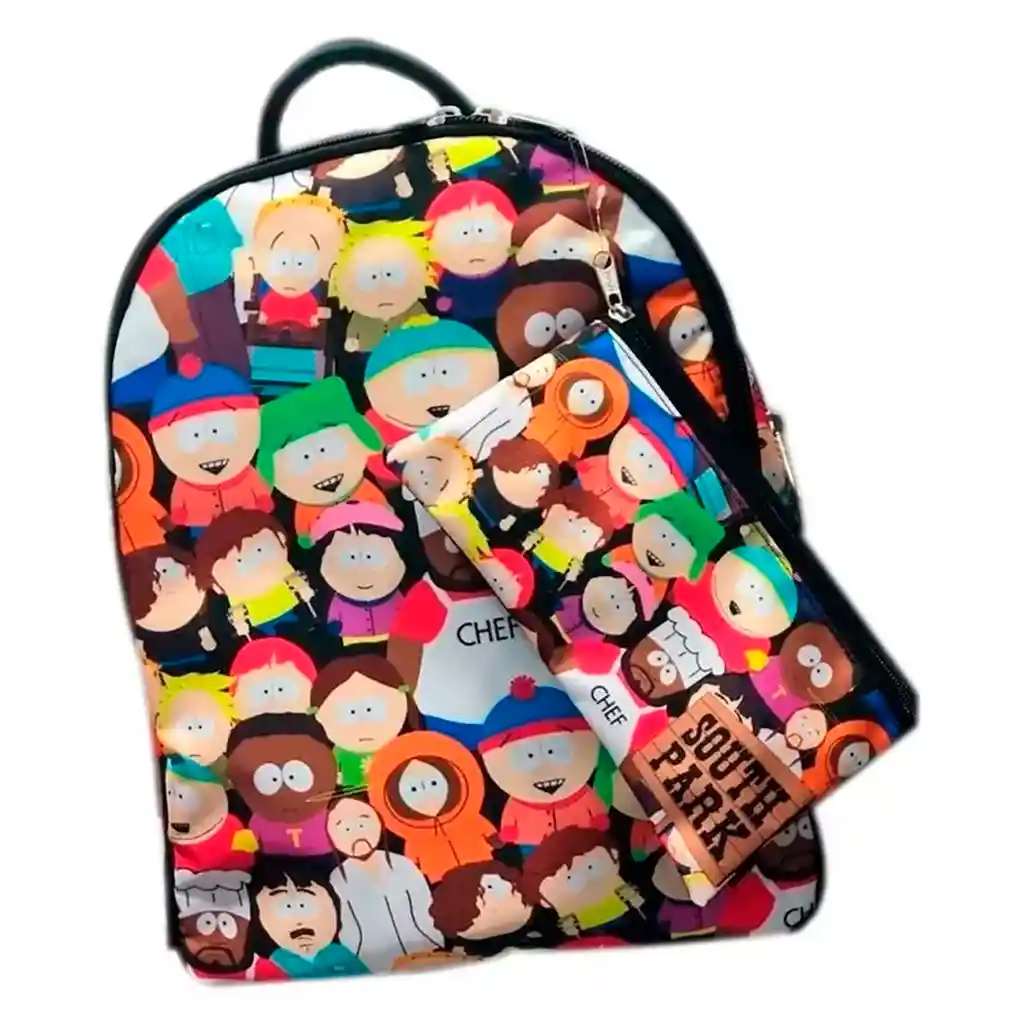 - Exclusivo Morral South Park para cualquier uso - Incluye CARTUCHERA - Medidas: Alto 43 cm x largo 36cm x Profundo 15 cm - Material en Lona Gruesa e Impermeable. - Cremalleras gruesas y resistente.