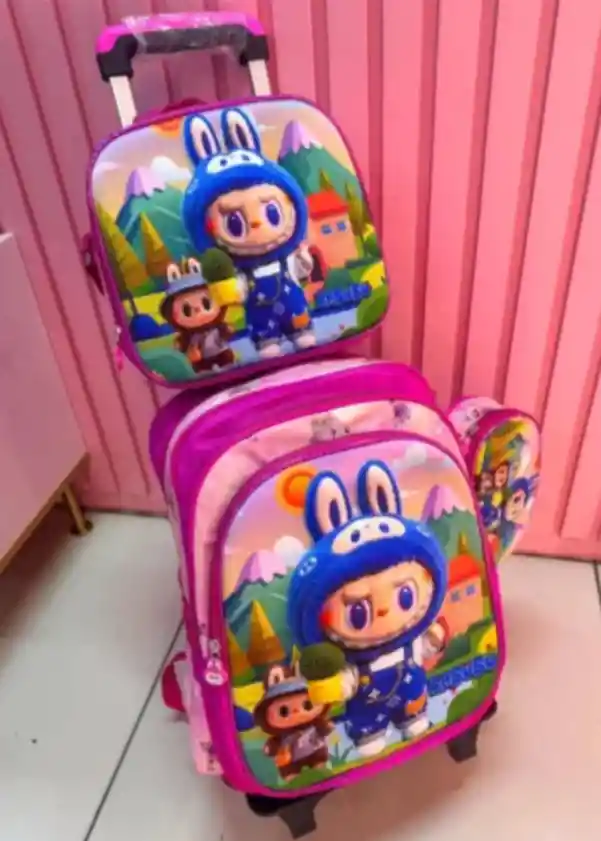 👾🎒 Maleta Labubu x3 🎒👾 Lleva diversión y estilo a todas partes con este set de 3 maletas Labubu ✔️ Set x3 Maleta, lonchera y cartuchera 🧳 ✔️ Diseño exclusivo y divertido de Labubu 👾 ✔️ Prácticas, resistentes y ligeras 💪 ✔️ Ideales para regalo 🎁 💥 ¡Viajar será más divertido con Labubu! 💥