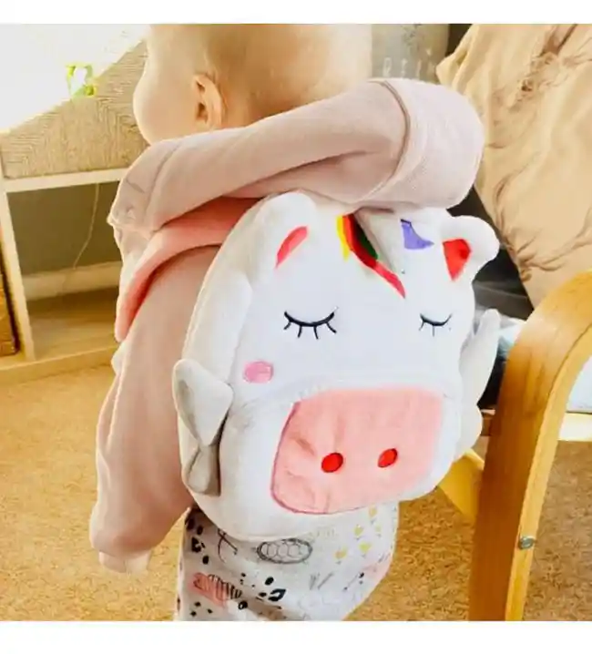 Mochila infantil súper suave y acolchada, con un diseño de unicornio lleno de brillo y fantasía. Perfecta para jardín, paseos, viajes cortos o para que los peques lleven sus juguetes favoritos de forma cómoda y segura. Características principales: • Diseño adorable de unicornio en felpa esponjosa. • Material suave, liviano y cómodo para uso diario. • Compartimento principal con cierre resistente. • Tamaño ideal para snacks, juguetes, libros pequeños o una muda. • Correas ajustables y acolchadas para mayor confort. • Colores vivos y detalles tiernos que enamoran a los niños. • Fácil de lavar y muy resistente. Un morral mágico y práctico que acompaña a los pequeños en todas sus aventuras con estilo y fantasía.