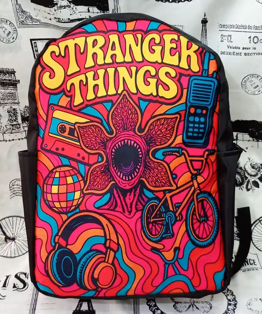Descubre el Morral Estampado Stranger Things de 40 cms, diseñado para los amantes de la serie que buscan un estilo urbano y funcional. Con una capacidad de 40 litros, este morral es ideal para llevar tus pertenencias diarias, desde libros hasta dispositivos electrónicos, gracias a su compartimento para portátil de hasta 14 pulgadas. Fabricado en tela resistente, este morral cuenta con tres bolsillos que te permiten organizar tus objetos de manera eficiente. Su diseño incluye un bolsillo para botella, lo que lo convierte en un compañero perfecto para tus aventuras diarias, ya sea en la escuela, el trabajo o en tus paseos. Con un peso ligero de solo 200 gramos, es fácil de llevar y se adapta a cualquier situación. Su cierre de cremallera asegura que tus pertenencias estén protegidas mientras te desplazas por la ciudad. El Morral Estampado Stranger Things combina estilo y practicidad, permitiéndote expresar tu pasión por la serie mientras disfrutas de la comodidad y funcionalidad que necesitas en tu día a día. Ideal para cualquier género, este morral es una elección perfecta para quienes buscan un accesorio que complemente su estilo de vida urbano. Es Producto Nuevo hecho en Colombia. Somos MAJO DETALLITOS Tienda Geek Kawaii.