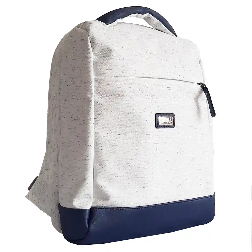 Morral pequeño anti-robo, compartimiento interno para laptop hasta de 12¨ fabricado con material ecológico a partir de botellas PET recicladas, bolsillos ocultos en la parte posterior.