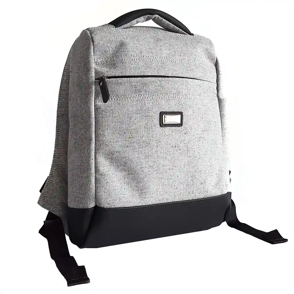 Morral pequeño anti-robo, compartimiento interno para laptop hasta de 12¨ fabricado con material ecológico a partir de botellas PET recicladas, bolsillos ocultos en la parte posterior.