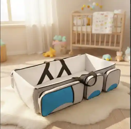 • Pañalera, cuna y cambiador • Fácil de doblar • Conveniente para vacaciones o paseos cortos • Con compartimientos para llevar todo lo que su bebé necesita • Dimensiones: 73 cm x 39 cm x 19 cm • Tela de poliéster 600D con laterales reforzados • Almacenamiento - 4 bolsillos exteriores con cremalleras resistentes • Cómodo - Acolchado con amplio espacio • Impermeable - Limpiar con un paño húmedo • Colores: Beige y azul