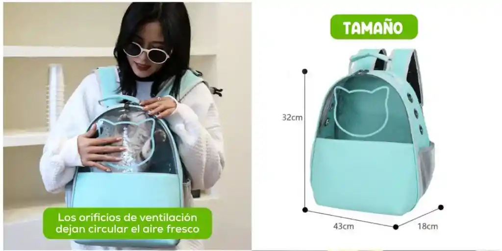 ESTE PRODUCTO SE ENVIA SEGUN DISPONIBILIDAD DE DISEÑO Y COLOR MORRAL PARA GATO CARGADOR MITAD CARA DE GATO COLOR AGUA MARINA