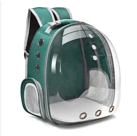 Esta es una mochila transportadora para mascotas (especialmente gatos y perros pequeños), diseñada con una ventana frontal transparente que permite al animal observar el exterior durante el paseo. Cuenta con múltiples orificios de ventilación laterales y frontales para garantizar una circulación de aire óptima, además de correas acolchadas ajustables que ofrecen comodidad al cargarla. Es una solución moderna, segura y ergonómica para viajes cortos, visitas al veterinario o paseos al aire libre.