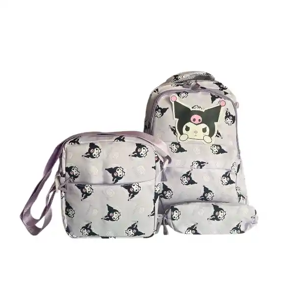 Este hermoso morral con estapado de kuromi es perfecto para acompañar tu outfit, es cómodo con varios espacios internos y externos, bolsillo para portátil, bolsillos laterales, lonchera y cartuchera, su material es impermeable.