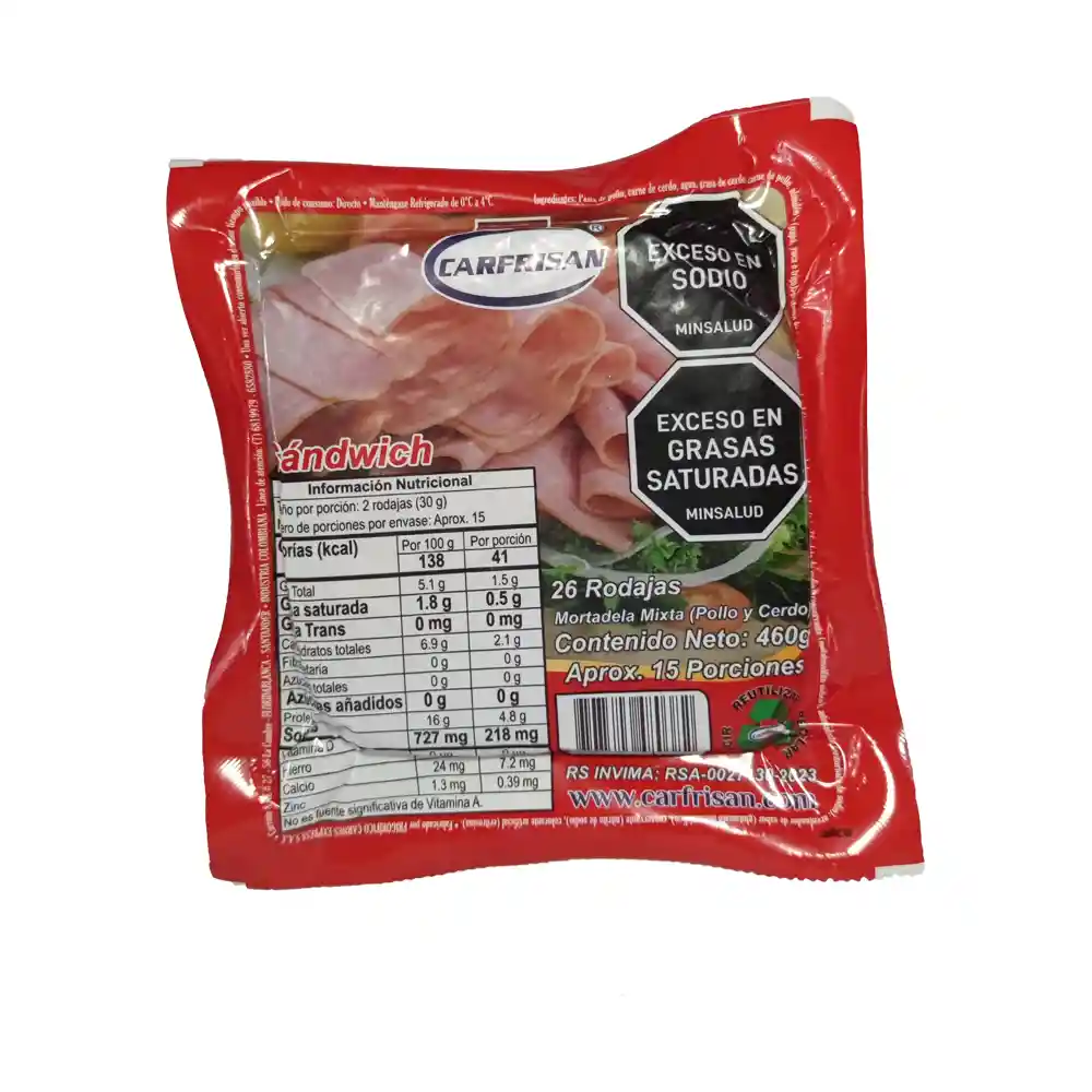 Mortadela mixta carfrisan, ideal para sandwiches