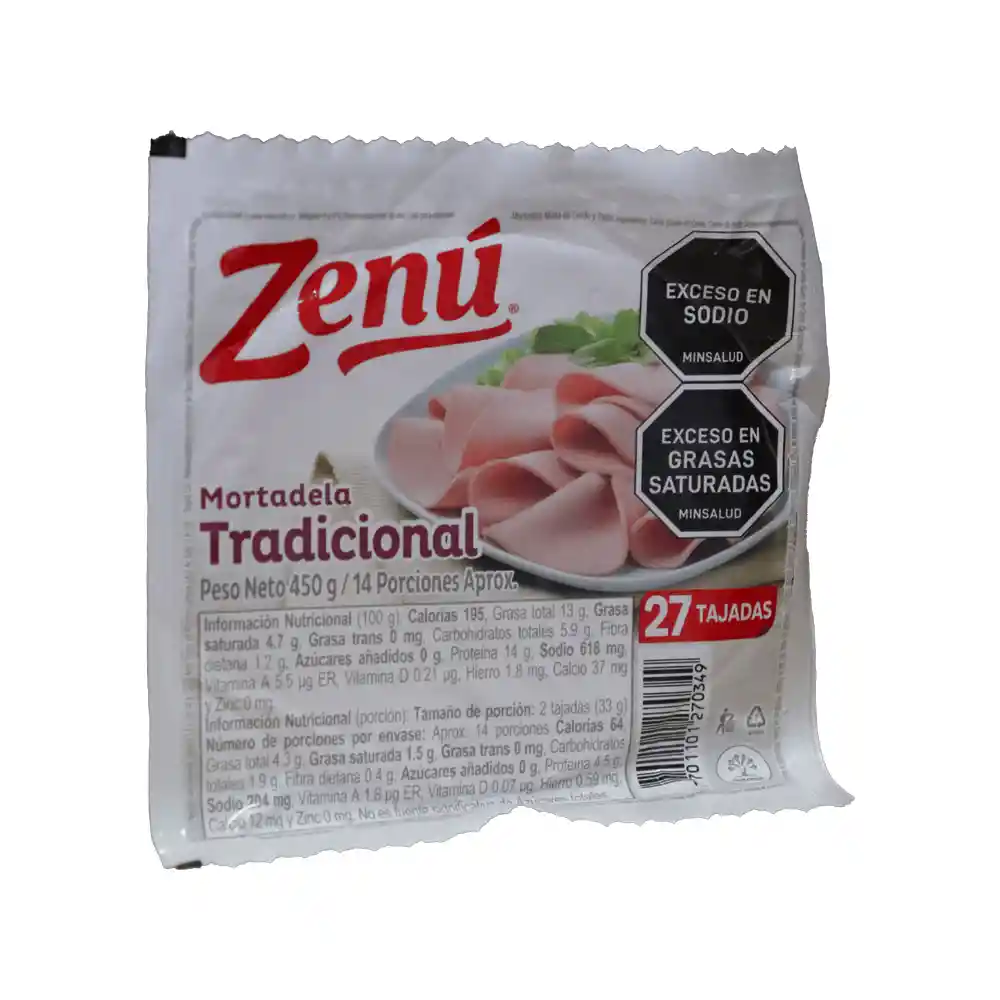 Mortadela Zenú Carne, es buena fuente de proteína y 25% reducida en sodio.