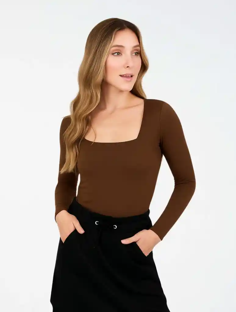 -Body cuello cuadrado y manga larga con panty tipo tanga - 2 capas de tela adelante y atrás para brindar mayor control y confort. Gafete en botones que genera mucha comodidad. - La modelo usa talla S y mide 160 Cm - Te hará lucir elegante y sofisticada gracias a su diseño y color que reflejará seguridad y fortaleza a tu look -Te verás arreglada sin mucho esfuerzo, puedes poner unos aretes grandes y dejar libre tu cuello y lucir mucho mas estilizada. - Hecho en Colombia.Material: 93% Poliéster y 7% Spandex