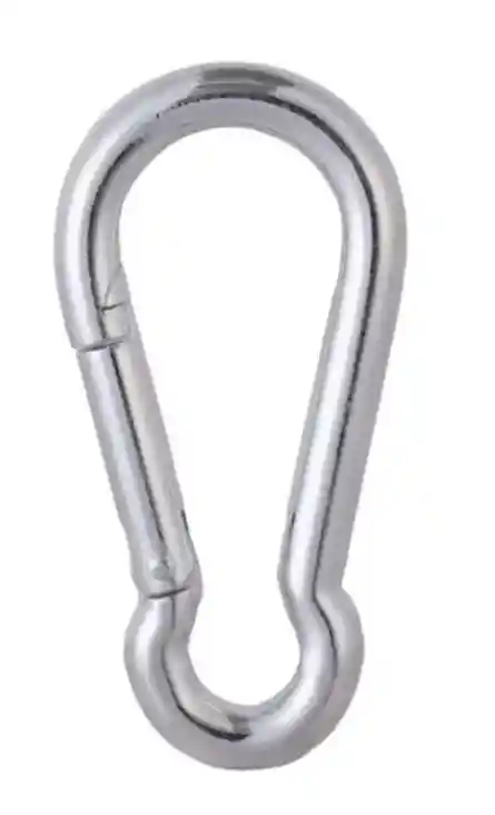 Mosquetón Con Seguro de Gancho CARACTERÍSTICAS • Capacidad de carga : 350 Kg • Longitud : 100 mm • Espesor : 3/8" - 10mm • Fabricados en Acero al Carbono • Acabado Plateado con Zinc • Marca UYUSTOOLS