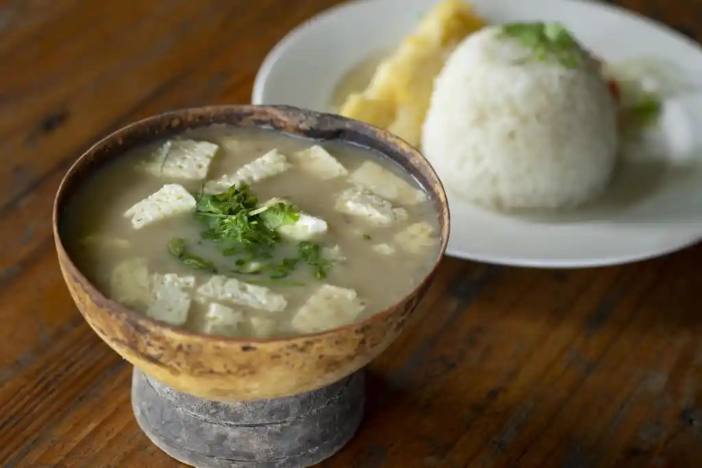 MOTE DE QUESO. CONTIENE QUESO, ÑAME, VERDURAS Y ARROZ.