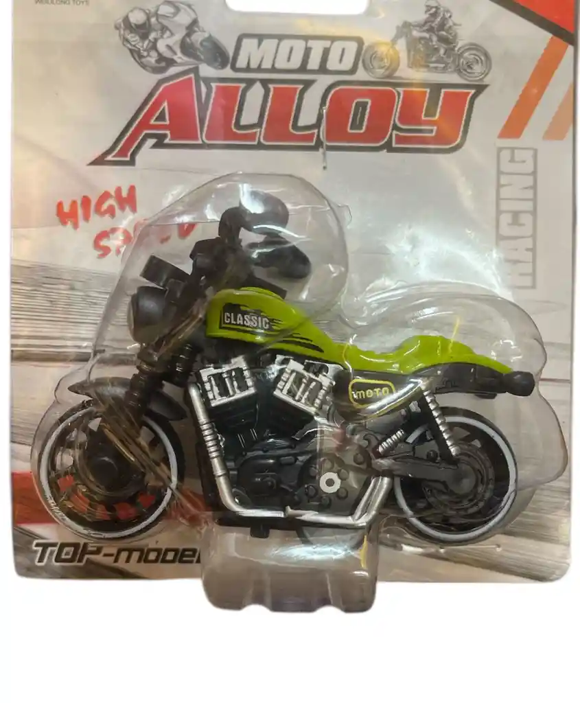 Moto de juguete color verde limón