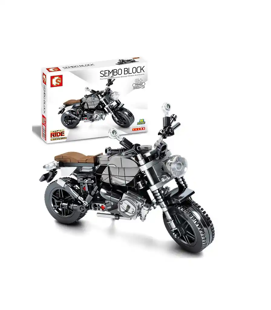 Moto armable tipo Lego de 262 piezas, réplica de BMW. Con movimiento en manubrio Incluye soporte e instrucciones Dificultad: Media