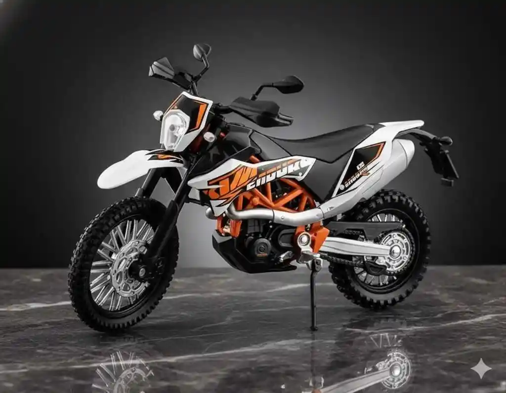 La moto coleccionable Welly KTM 690 Enduro R es una impresionante réplica a escala de una de las motocicletas más representativas en el mundo del enduro y el off-road. Esta miniatura captura la robustez, la tecnología avanzada y el diseño agresivo que han convertido a la KTM 690 Enduro R en un referente entre los aficionados al motociclismo de aventura y terrenos difíciles. Características: Escala 1:18: Este modelo está a escala 1:18, lo que permite una reproducción detallada y precisa, perfecta para exhibir en tu colección de motos o en una vitrina. Diseño auténtico: Con detalles minuciosos que reflejan el diseño característico de la KTM 690 Enduro R, desde el chasis de aluminio hasta las llantas de radios y los neumáticos todoterreno, este modelo muestra la esencia de la moto real. Detalles realistas: Incluye componentes que imitan perfectamente la suspensión WP, el sistema de escape, el manillar, los frenos y el radiador, proporcionando una representación fiel de la moto original. Colores y gráficos precisos: Los colores y logotipos de KTM están reproducidos con precisión, con una pintura brillante y acabados que resalten la agresividad y estilo de la moto en la vida real. Materiales duraderos: Fabricada con materiales resistentes, esta moto coleccionable está diseñada para perdurar, mostrando su calidad tanto en su estructura como en sus acabados. Detalles técnicos: Aunque el modelo es estático, los elementos como las suspensiones y el motor están representados de manera que reflejan el diseño funcional de la moto, permitiendo apreciar la tecnología y características que hacen de la KTM 690 Enduro R una máquina única. Ideal para coleccionistas, fanáticos de las motos de enduro o para aquellos que simplemente disfrutan de la excelencia técnica de KTM, la moto coleccionable Welly KTM 690 Enduro R es una pieza imprescindible que resalta la pasión por el off-road y la ingeniería de alto rendimiento. ¡Una joya para cualquier amante del motociclismo!