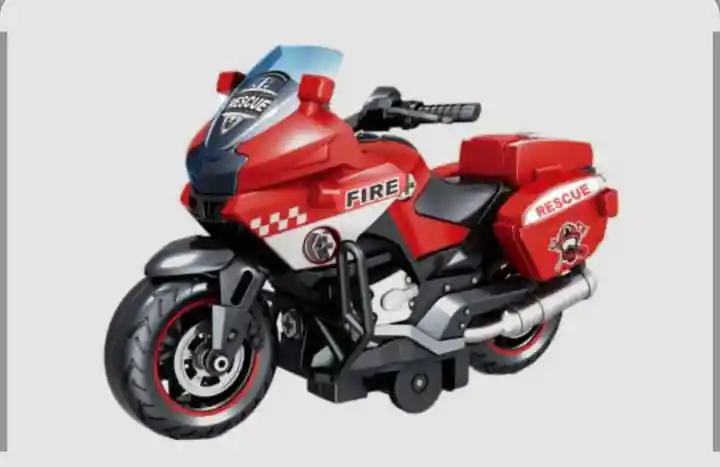 Moto con sus herramientas para armar y desarmar De color rojo y pequeños detalles negros y blancos de bombero