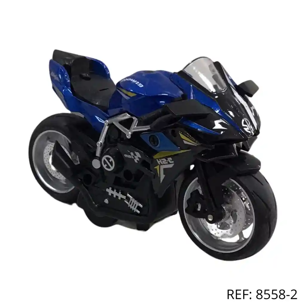 Motocicleta azul de estilo deportivo, con detalles en negro. Perfecta para fans de las motos de alto rendimiento