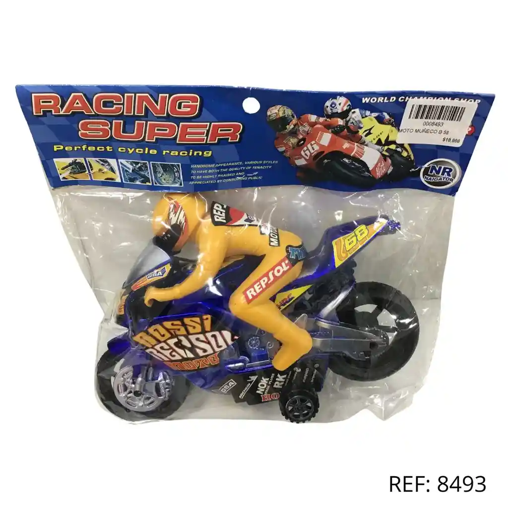 Moto de carreras con muñeco piloto. ¡Corre, acelera y gana con estilo profesional!