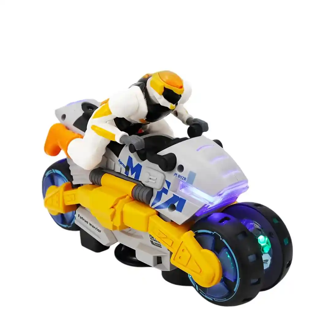 ¡Prepárate para una dosis de acción futurista y acrobacias que desafían la imaginación con nuestra increíble Moto Transformable 2 en 1! Este vehículo de otro mundo no solo corre a toda velocidad como una potente motocicleta, sino que con un asombroso movimiento despliega sus ruedas para convertirse en un impresionante aerodeslizador flotante. La verdadera magia comienza al encenderla, cuando desata un espectacular show de luces LED y proyecciones de colores que giran y bailan por toda la habitación, mientras la moto realiza imparables giros de 360 grados por sí sola. Con su diseño aerodinámico y su piloto listo para cualquier misión, este juguete es una fuente inagotable de diversión dinámica que estimula los sentidos y enciende la creatividad, convirtiendo cualquier espacio en una arena de acrobacias del futuro. /// El juguete incluye baterias /// Ficha Técnica: Dimensiones : 21 cm x 13 cm x 8 cm Funcionamiento : Batería AA ( Incluida ) Material: Plastico ABS Edad Recomendada: +3 Años Certificado de conformidad: E5-0359-2021 Referencia: LD-175A Para defectos de fábrica o retractos: Por favor revise el producto apenas lo reciba y antes de usarlo. No aplican ley de retracto o defectos de fábrica luego de usar el producto. Se manejan máximo 5 días para reportar defectos de fábrica (por ejemplo, producto funciona mal, piezas faltantes, rotas, etc). Para hacer efectiva la devolución el producto debe devolverse con el empaque original, el cual debe estar en buen estado, incluir todos los documentos y las partes completas y sin daños.
