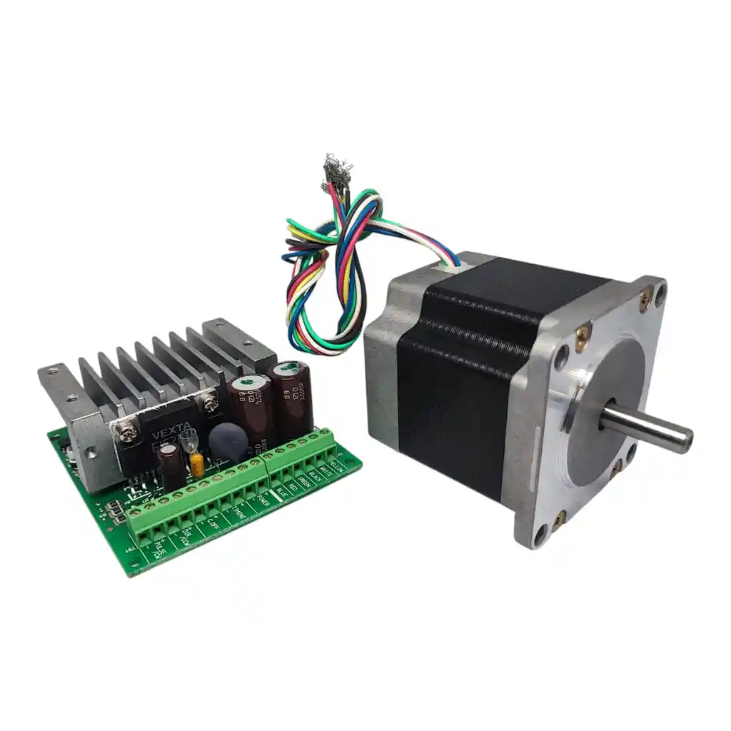 Motor Paso a Paso NEMA 23 VEXTA PK266-02B 1.8° 2A con Driver CSD2120-T Motor paso a paso NEMA 23 marca VEXTA modelo PK266-02B, diseñado para aplicaciones de control de movimiento que requieren alto torque, precisión y confiabilidad. Cuenta con un ángulo de paso de 1.8 grados, equivalente a 200 pasos por revolución, lo que permite un posicionamiento preciso y repetible. Es ampliamente utilizado en CNC, routers, máquinas industriales, automatización, sistemas de posicionamiento y equipos de fabricación donde se exige un desempeño robusto y estable. El motor está fabricado con materiales de alta calidad, eje de acero y bobinas diseñadas para trabajo continuo, ofreciendo bajo nivel de vibración y excelente estabilidad mecánica. Opera con corriente nominal de 2 A por fase y está pensado para ser controlado mediante driver externo, garantizando un control eficiente del movimiento. El conjunto incluye driver modelo CSD2120-T, diseñado para motores paso a paso NEMA 23, proporcionando un control estable y confiable del motor. Este driver permite un manejo eficiente de la corriente, mejorando el rendimiento del motor, reduciendo vibraciones y asegurando un funcionamiento suave incluso a bajas velocidades. Su diseño robusto lo hace adecuado para aplicaciones industriales y de uso continuo. Especificaciones Tipo: Motor paso a paso con driver Marca del motor: VEXTA Modelo del motor: PK266-02B Tamaño del motor: NEMA 23 Ángulo de paso: 1.8 grados Pasos por revolución: 200 Corriente nominal: 2 A por fase Tipo de motor: Paso a paso Modelo del driver: CSD2120-T Ventajas Alto torque y excelente precisión Funcionamiento estable y confiable Ideal para trabajo continuo Compatible con aplicaciones industriales Conjunto listo para integrar Aplicaciones comunes CNC y routers Máquinas industriales Automatización Sistemas de posicionamiento Robótica Producto ideal para quienes buscan un motor paso a paso NEMA 23 potente, preciso y confiable, con driver incluido para aplicaciones exigentes. LA COMPRA INCLUYE: 1X MOTOR PASO NEMA23 VEXTA PK266-02B 1.8° 2A DRIVER CSD2120-T