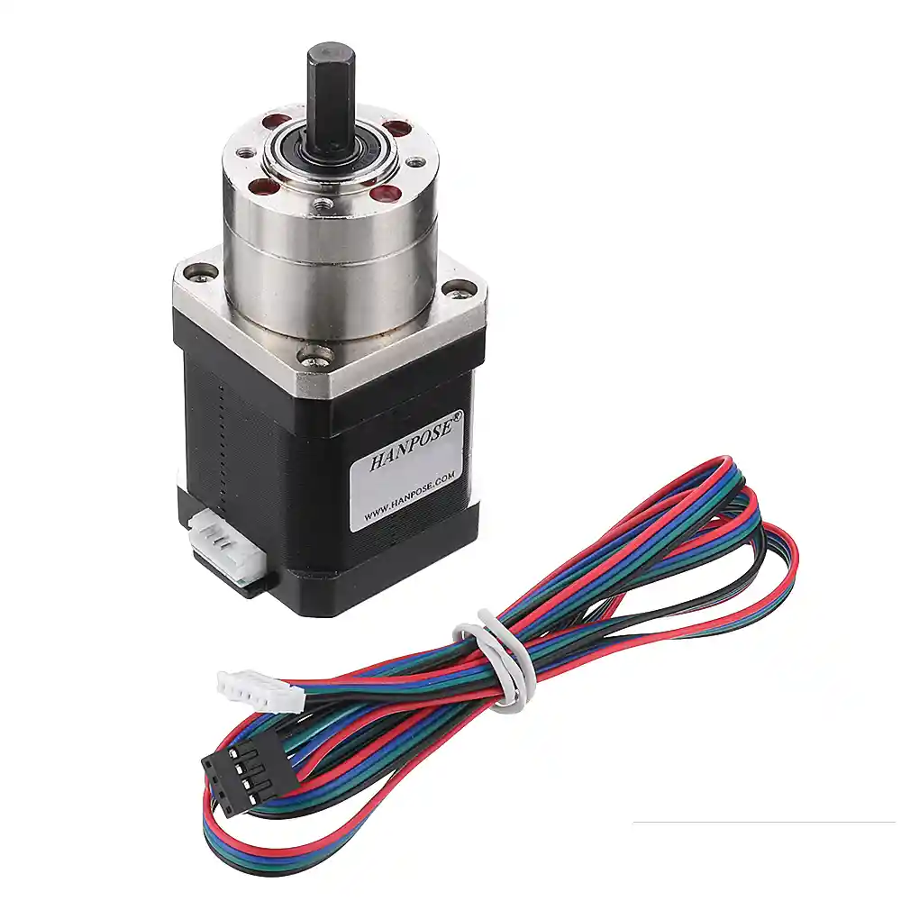Motor paso paso nema17 con caja reductora planetaria integrada. Eje: 8mm en forma D. Longitud eje: 17mm Diametro caja reductora: 36mm Longitud caja reductora: 37mm Lontitud motor: 46mm ( incluyendo base de la caja reductora) Longitud total: 91mm Tipo: 42BYGP40-PG14. Relacion: 14:1 LA COMPRA INCLUYE: 1X MOTOR PASO PASO NEMA17 CAJA REDUCTORA PLANETARI 14:1 EJE 8mm 1X CABLE 1mt