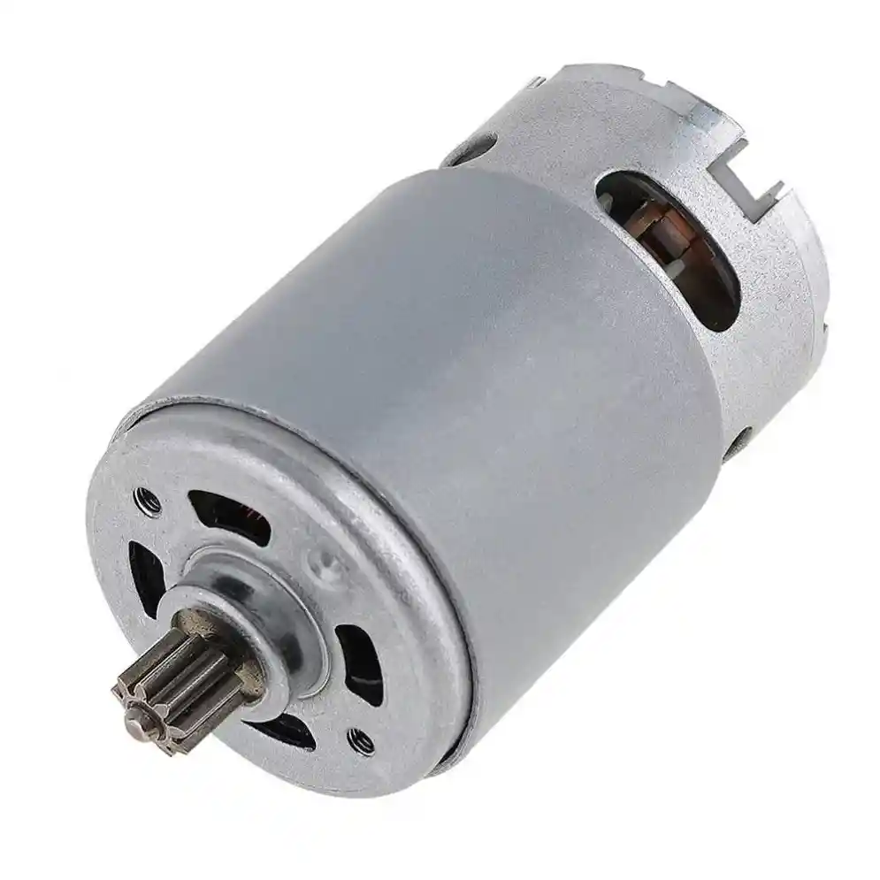 Motor RS550 21V 19500 RPM con Caja de Engranajes y 9 Dientes – Alta Potencia y Torque Motor eléctrico RS550 de corriente continua (DC) de 21V con 19500 RPM y caja reductora de alta torsión (high torque). Diseñado para taladros eléctricos, destornilladores recargables, herramientas portátiles y proyectos de bricolaje, este motor ofrece una excelente combinación de potencia, durabilidad y bajo nivel de ruido. Cuenta con rodamientos de bolas en ambos extremos, carcasa metálica resistente y un piñón de 9 dientes ya instalado, listo para usar o adaptar en diversas aplicaciones. Es ideal para reemplazar motores dañados en herramientas eléctricas o para construir equipos experimentales que requieran un motor potente y confiable. Especificaciones técnicas: Modelo: RS550 Tipo: Motor DC con escobillas (Brush Motor) Voltaje nominal: 21 V DC Velocidad sin carga: 400 – 19500 rpm Potencia de salida: 90 W Torque máximo: 1 N·m Piñón: 9 dientes (instalado) Construcción: Imán permanente Material: Metal Color: Plateado Montaje: 2 tornillos M4 (frontal) Diámetro del cuerpo: 36 mm Longitud: 70 mm Peso: 230 g Tipo de caja: General Box (empaque de venta) Características destacadas: Alta potencia y velocidad de rotación. Gran torque ideal para herramientas eléctricas. Rodamientos dobles (delantero y trasero) para mayor vida útil. Funcionamiento estable y bajo nivel de ruido. Motor confiable para uso prolongado y continuo. Compatible con la mayoría de taladros y destornilladores recargables tipo RS550. Aplicaciones: Taladros eléctricos y destornilladores inalámbricos. Herramientas portátiles y mini máquinas. Proyectos de ingeniería, robótica o CNC. Equipos caseros o experimentales que requieran alto torque. LA COMPRA INCLUYE: 1X MOTOR TALADRO INALAMBRICO RS550 19500RPM 21V