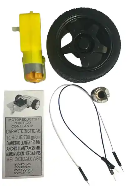 MOTORREDUCTOR CON LLANTA TIPO ARDUINO MAQUETA EXPERIMENTO ESCOLAR UNIVERSIDADES