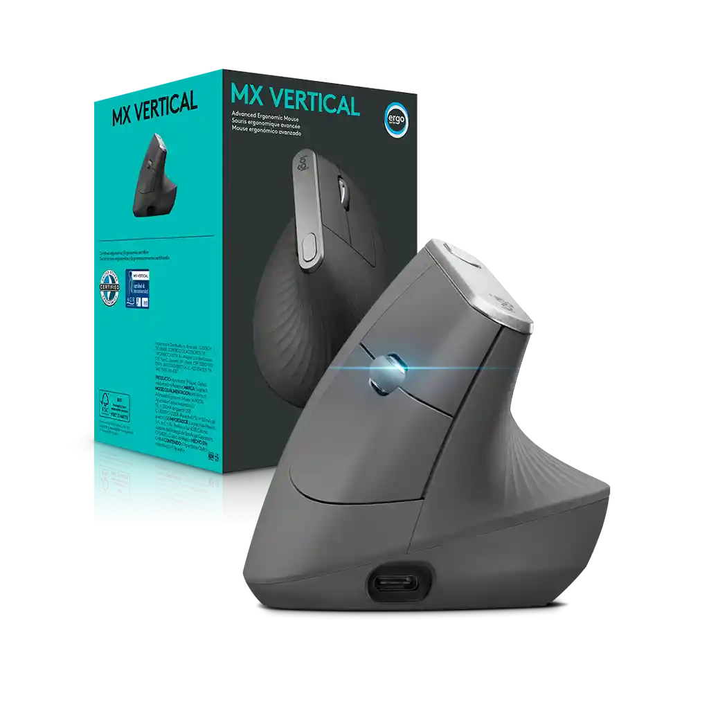 COMBINACIÓN DE CONFORT Y DESEMPEÑO MX Vertical es un mouse ergonómico avanzado que combina un diseño con base científica y el alto desempeño de la serie MX de Logitech. Supera las molestias con un mouse diseñado para reducir la tensión muscular, disminuir la presión en la muñeca y mejorar la postura. POSICIÓN DE SUJECIÓN NATURAL La posición de sujeción natural con MX Vertical reduce la tensión muscular de la mano en un 10%1En comparación con un mouse tradicional no vertical. y fomenta una postura más ergonómica. Especificaciones: Sensor: Valor nominal: 1000 y 1600 dpi dpi (valores mínimo y máximo): 400-4000 dpi (ajustable en incrementos de 50 dpi) Botones: 4 botones personalizables (de forma predeterminada: Retroceso/Avance, click y click de botón central) Rueda de desplazamiento: Botón scroll de precisión Batería: Batería recargable Li-Po (240 mAh) Distancia de funcionamiento inalámbrico: 10 m inalámbrico Dimensiones: Altura: 78,5 mm Ancho: 79 mm Profundidad: 120 mm Peso: 135 g Incluye: Mouse Receptor USB Unifying Cable de carga USB-C (USB-A a USB-C) Documentación del usuario Garantía: 12 meses