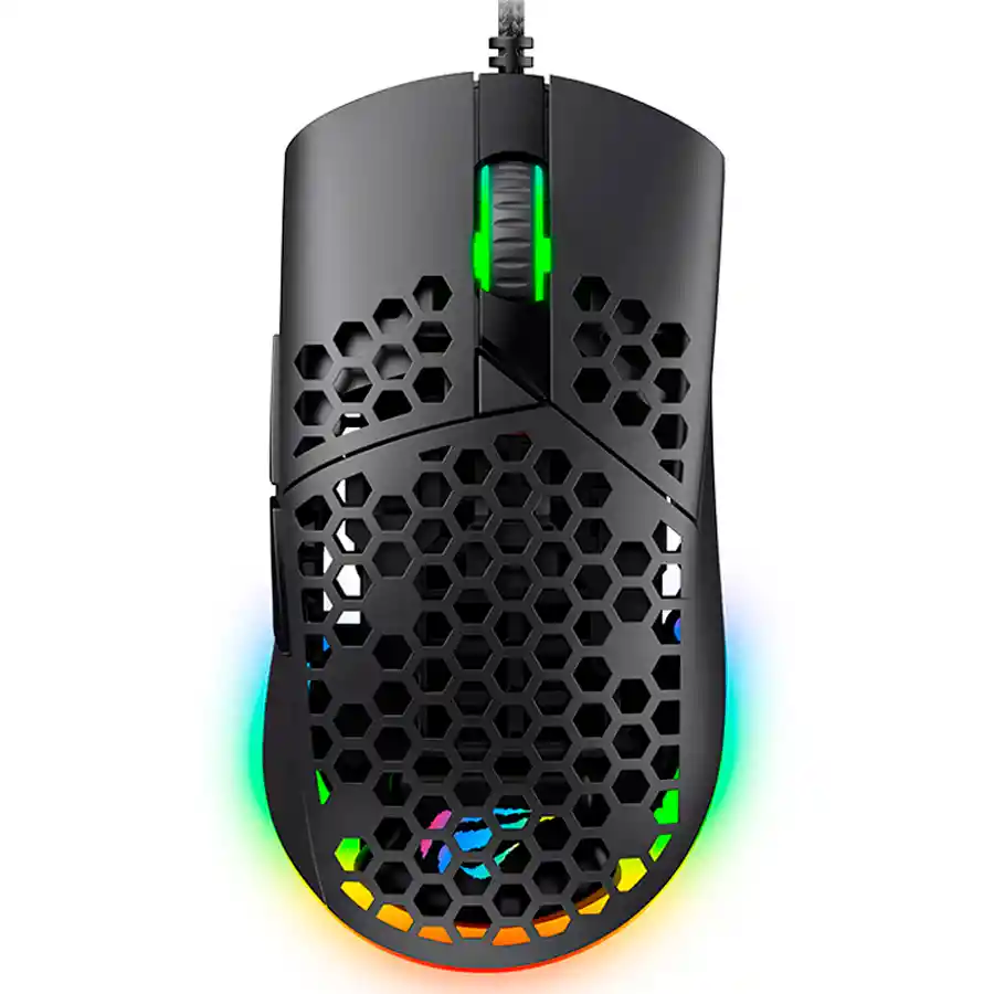 Mouse Gamer Havit Gamenote MS1036 El ratón gaming programable con cable Havit MS1036 RGB está diseñado para mejorar tu experiencia de juego gracias a su diseño ergonómico y funciones avanzadas. Su forma ergonómica, junto con una superficie antideslizante, garantiza un agarre cómodo que se adapta perfectamente a las palmas, lo que permite largas sesiones de juego sin fatiga. Este ratón cuenta con un chip sensor de alta calidad que admite hasta 7200 DPI y proporciona un seguimiento y una respuesta precisos. La precisión en el objetivo es posible durante sesiones de juego intensas gracias a la facilidad de personalización de la sensibilidad con 6 niveles de DPI. El efecto de luz de color brillante RGB de Havit es el MS1036. Con tantos efectos de iluminación personalizables a tu disposición, puedes adaptar la iluminación a tus preferencias. Los efectos de iluminación del ratón aportan un toque inmersivo a tu configuración de juego, independientemente de si prefieres una iluminación suave o tonos brillantes. El ratón cuenta con la función de programación de macros de 7 teclas, lo que te permite asignar macros complejas y combinaciones de habilidades a los botones del ratón. Con solo pulsar un botón, puedes ejecutar maniobras o comandos complejos, lo que te da ventaja en el juego competitivo. El ratón para juegos programable con cable Havit MS1036 RGB combina diseño ergonómico, seguimiento preciso, iluminación RGB personalizable y funciones de programación de macros para mejorar tu rendimiento y sumergirte en la emoción de cada partida. Especificaciones: - Modelo: Havit MS1036 - Serie: Juego - Tipo: Ratón óptico - Estilo y tamaño: Grande regular - Tipo de conexión: Cableada - Interfaz: USB - DPI máximo: 7200 DIP - Resolución: 1200, 1600, 2400, 4800, 6400, 7200 DPI - Número de botones: 7 - Control de desplazamiento: Rueda - Rueda: Sí, - Iluminación: RGB