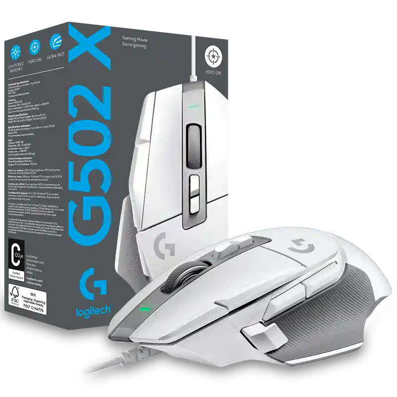 Especificaciones principales 89 gramos 5 perfiles en la memoria integrada Pies de PTFE de baja fricción Especificaciones Físicas Peso: 89 g Altura: 131,4 mm Ancho: 41,1 mm Profundidad: 79,2 mm Especificaciones técnicas Hasta 5 perfiles de memoria integrada Pies de PTFE 13 controles programables Seguimiento Sensor: HERO 25K Resolución: 100 – 25.600 dpi Aceleración máx.: >40G2 Velocidad máx.: >400 IPS2 Sin suavizado/aceleración/filtros Garantía: 24 Meses