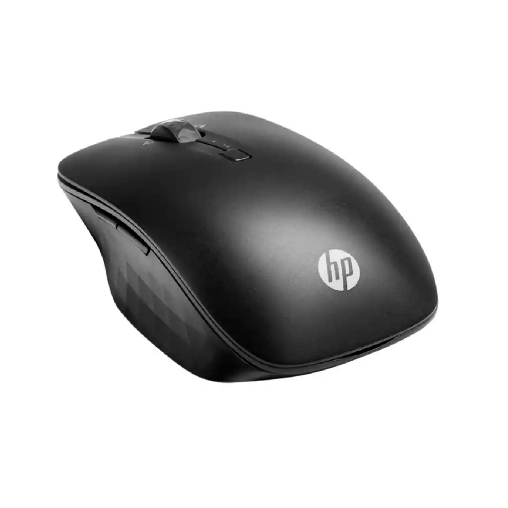 Mouse inalámbrico HP Bluetooth Travel Mouse que funciona prácticamente en cualquier superficie, incluido el vidrio, e incluso puede manejar dos PC a la vez.