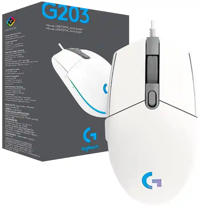 ESPECIFICACIONES Requisitos • Windows® 7 o posteriores • macOS 10.10 o posteriores • Chrome OSTM • Puerto USB Especificaciones físicas • Altura: 116,6 mm • Anchura: 62,15 mm • Profundidad: 38,2 mm • Peso: 85 g (sólo mouse) • Longitud del cable: 2,1 m Especificaciones técnicas • Iluminación RGB LIGHTSYNC • 6 botones programables • Resolución: 200 – 8.000 dpi