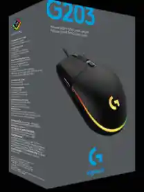 Mouse G203 para juegos Documentación del usuario Dos años de garantía de hardware limitada Altura: 116,6 mm Anchura: 62,15 mm Profundidad: 38,2 mm Peso: 85 g, sólo mouse Longitud de cable: 2,10 m Resolución: 200 – 8.000 dpi Sin suavizado/aceleración/filtros Aceleración máx.: >25 G2Pruebas realizadas sobre alfombrilla de mouse Logitech G240 para juegos Velocidad máx.: >200 ips3Pruebas realizadas sobre alfombrilla de mouse Logitech G240 para juegos