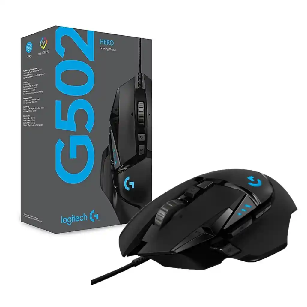 • 25.000 dpi • 11 botones programables • peso ajustable • software • Tipo de sensor: Óptico • Tecnología del sensor Hero 16K • Con cable : Sí • Línea : G Series • Garantia : 12 Meses
