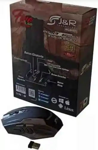 MOUSE GAMER MOUSE GAMER 7 BOTONES MOUSE GAMER LED MOUSE GAMER JR Mouse Gamer led 7d (7 botones) inalámbrico 800/1200/1600/2400/3200 dpi ajustables • Diseño exclusivo • Ergonómico • Teclas de acceso directo • Ajustable a 3200 DPI • 10mt de alcance • 2 pilas AA (No incluye) • Dimensiones: 22.5 × 6.5 × 16.5 cm • Peso: 0.19 kg • Botones: 7