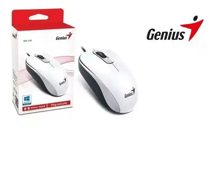 Mouse genius USB Dx-110-120 Genial para ambas manos. Compatible con Windows y MacOS Sensación suave y cómoda al tacto. Especificaciones Requisitos del sistema Windows 7, 8, 8.1, 10 Mac OS 10.7.4 o superior Puerto USB Especificaciones Unidad de sensor Óptico Longitud de cable 1.5m Cantidad de botones Tres (izquierda, derecha y central con desplazamiento) Colores Negro apacible, Blanco elegante, Azul Marino, Rojo pasión, Verde primavera Peso 85 g Dimensiones (A x A x P) 60 x 105 x 37 mm (2.36 x 4.13 x 1.46 inches) Contenido de la caja DX-110