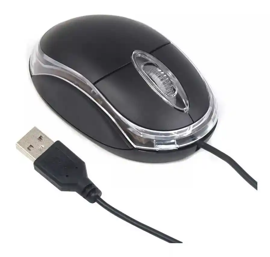 COLOR: NEGRO, TRANSPARENTE EN LA MITAD CON LUZ LED ROJA BOTON TECLA: MOUSE OPTICO CABLE: 1.3M CABLE DE COBRE NEGRO INTERFAZ USB TECLAS: 3 TECLAS CON MAS DE 4 MILLONES DE VECES EMPAQUE: CAJA