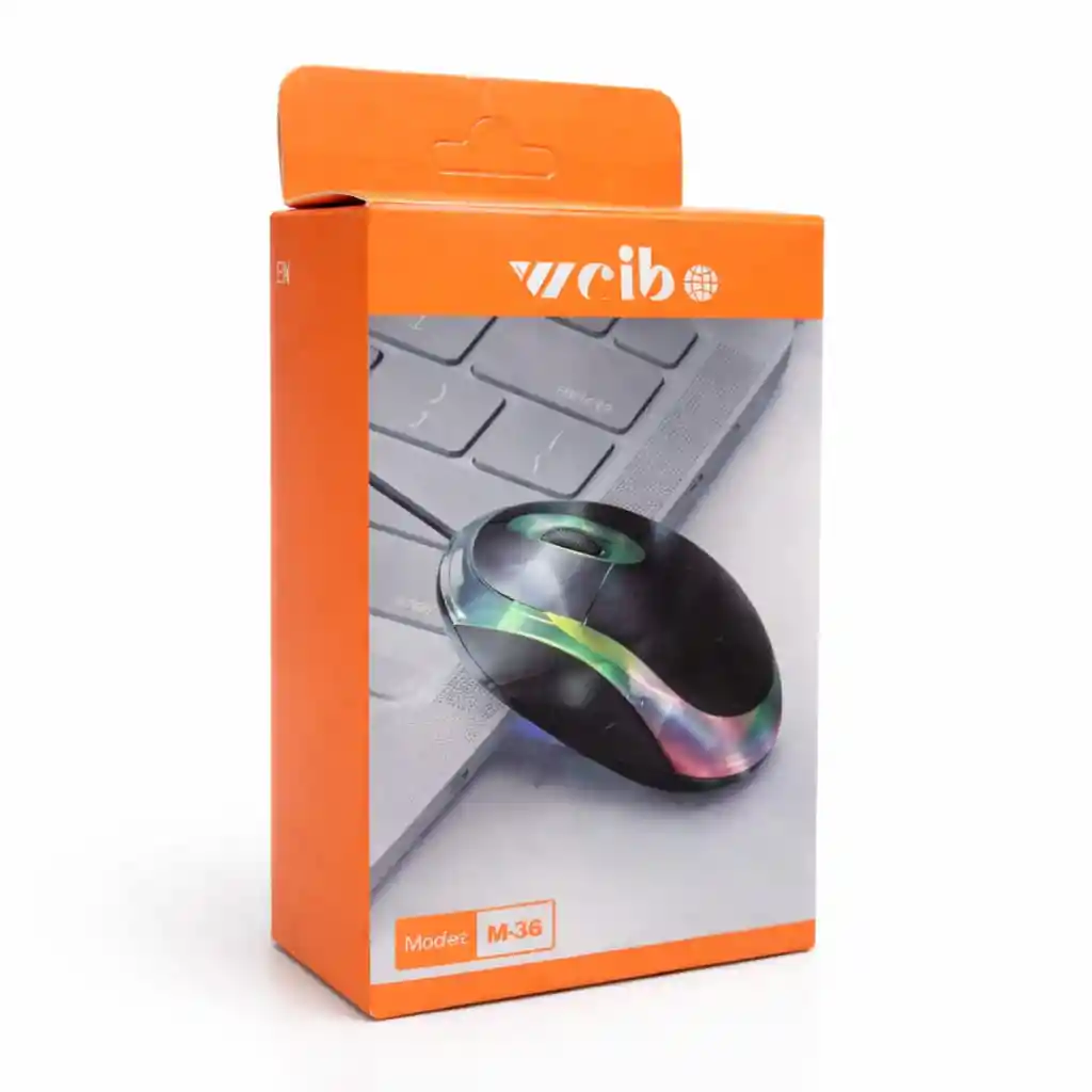 El Mouse Óptico Weibo M36 es una opción clásica y confiable para el uso diario en computadores de escritorio y portátiles. Su sensor óptico de 1600 DPI ofrece movimientos precisos y suaves, ideal para oficina, estudio o uso doméstico. ✅ Características principales: Marca: Weibo Modelo: M36 Tipo: Mouse óptico con cable Resolución: 1600 DPI Conexión: USB Diseño clásico y ergonómico Alta precisión y respuesta rápida Plug & Play (no requiere instalación) Compatible con Windows, macOS y Linux 📦 Producto nuevo, funcional y duradero.