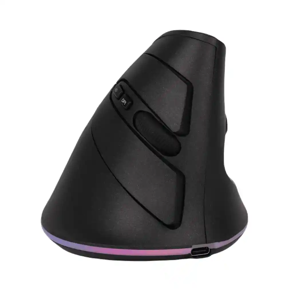 MOUSE VERTICAL ERGONÓMICO Diseño vertical que promueve una postura natural de la mano, reduciendo la tensión en la muñeca durante largas sesiones de uso. ILUMINACIÓN RGB PERSONALIZABLE Cuenta con luz RGB que añade un toque gamer, permitiendo personalizar el estilo según tus preferencias. MÚLTIPLES OPCIONES DE CONEXIÓN Conexiones versátiles a través de 2.4 GHz y Bluetooth 5.1, brindando flexibilidad para usarlo con diferentes dispositivos. BATERÍA DE LARGA DURACIÓN Batería recargable de 600 mAh que ofrece hasta 15 días de uso continuo, asegurando que siempre esté listo cuando lo necesites. AJUSTE DE DPI PARA MAYOR PRECISIÓN Resolución ajustable de 800 a 2400 DPI, ideal para adaptarse a diferentes tareas y mejorar la precisión en el trabajo o juegos.