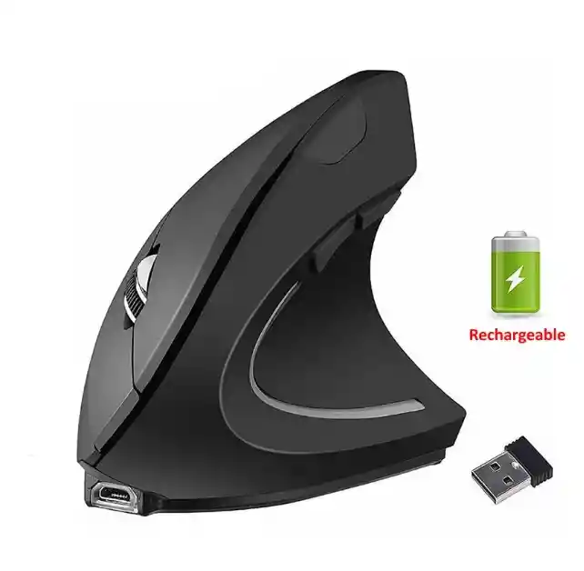 Ratón inalámbrico RECARGABLE Vertical derecho ergonómico 2,4GHz 1600 DPI óptico. Características: Fuente de alimentación: RECARGABLE 500mAh Tamaño del ratón: 125x65x82mm Peso neto: 109g PPP ajustable: 800-1200-1600 Botón: 6 botones (botones izquierdo/derecho, botones de avance/retroceso, botones DPI, Scoller) Color: Negro Material: ABS Diseño: Ergonómico Vertical Tipo: Inalámbrico 2.4 GHz Especificaciones: Diseño ergonómico, tecnología de seguimiento óptico, trabaja en muchas superficies diferentes, uso ideal para el hogar, Oficina o juegos. Ratón inalámbrico de 2,4 GHz, tacto cómodo. Línea rodante por línea arriba y abajo. Modo Plug and play. El dongle se puede guardar en el ratón ordenadamente cuando no se utiliza. Espacio de almacenamiento del receptor y fácil de transportar. Compatibilidad con el sistema: Windows 2000, Windows XP, Windows 7 a Windows 11, Mac OS, Android.