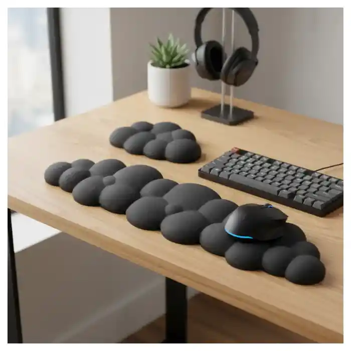 Descubre el reposamuñecas de nube morado que cuida tu salud mientras usas el computador. Diseñado con una suave espuma que reduce la presión sobre tus muñecas, ideal para todos en casa: niños, jóvenes, adultos y adultos mayores. Perfecto para largas jornadas frente al teclado. Diseño moderno, tierno y funcional. Gamer friendly: ideal para juegos prolongados. Estudiantes y oficinistas lo aman por su comodidad.
