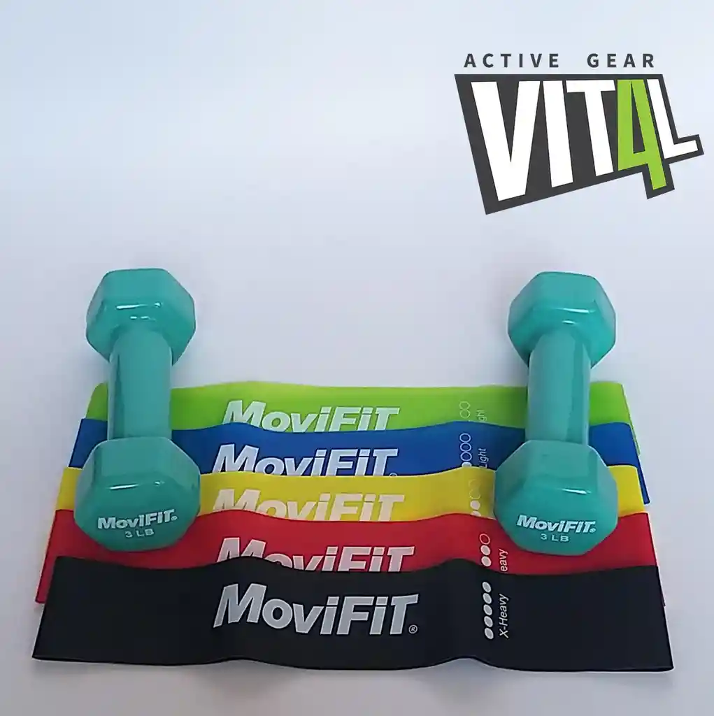 Combo Mancuernas 3lb Vinilo + Set Bandas 5 Niveles Movifit