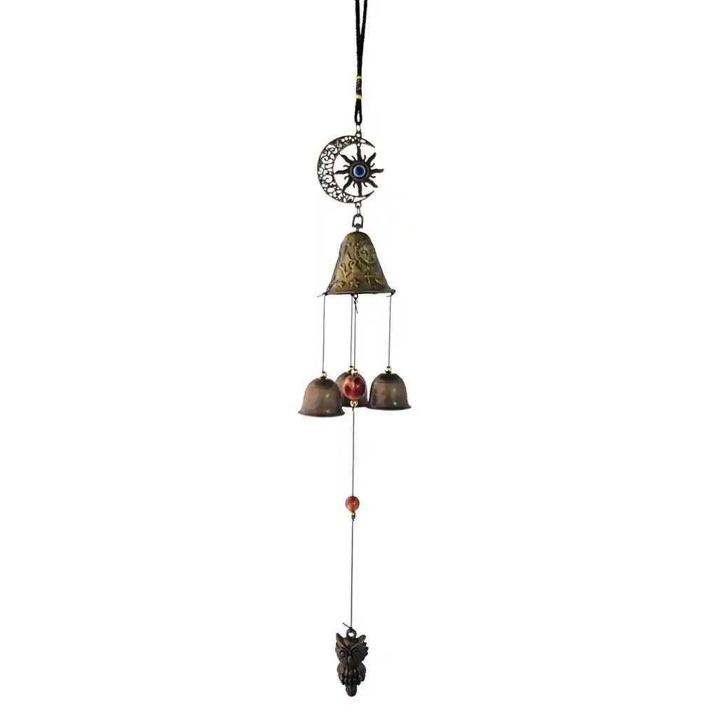 Perfecto para colgar en entradas, ventanas, balcones o espacios interiores, el movimiento suave de sus piezas crea una sensación de armonía y tranquilidad. Ficha Técnica: Material: Metal - Hilos Altura : 56cm Altura de cada Campana Pequeña : 2.8cm Altura Campana Grande: 5.5cm Altura Estrella Turco : 5cm Altura Buho 5: cm Referencia: NL2401-132A Términos de Garantía: Para defectos de fábrica o retractos: Por favor revise el producto apenas lo reciba y antes de usarlo. No aplican ley de retracto o defectos de fábrica luego de usar el producto. Se manejan máximo 5 días para reportar defectos de fábrica (por ejemplo, producto funciona mal, piezas faltantes, rotas, etc). Para hacer efectiva la devolución el producto debe devolverse con el empaque original, el cual debe estar en buen estado, incluir todos los documentos y las partes completas y sin daños. Los cuidados y recomendaciones para mantener un producto en buen estado son los siguientes: No aplicarle perfumes ni cremas directamente, no mojarlos, no dejarlos caer y procurar limpiarlos para retirar suciedad.