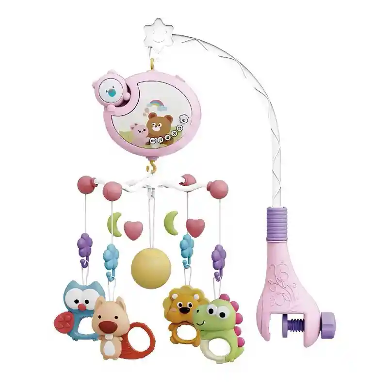 Móvil musical con luces para cuna – Diseño para niña Este hermoso móvil está diseñado para acompañar el descanso y la estimulación temprana de tu bebé con sonidos suaves, luces y figuras encantadoras que giran lentamente sobre la cuna. Características destacadas: Proyección de luces suaves y relajantes, ideales para la hora de dormir. Música con diferentes melodías, que ayudan a calmar al bebé y estimulan el sentido auditivo. Movimiento giratorio automático, que capta la atención visual y fomenta el seguimiento con la mirada. Figuras colgantes de tela con diseños delicados, ideales para la estimulación visual. Compatible con la mayoría de cunas tradicionales. Fácil de instalar y operar, con controles accesibles. Ideal desde el nacimiento hasta los primeros meses de vida, favorece rutinas de sueño más tranquilas y seguras.